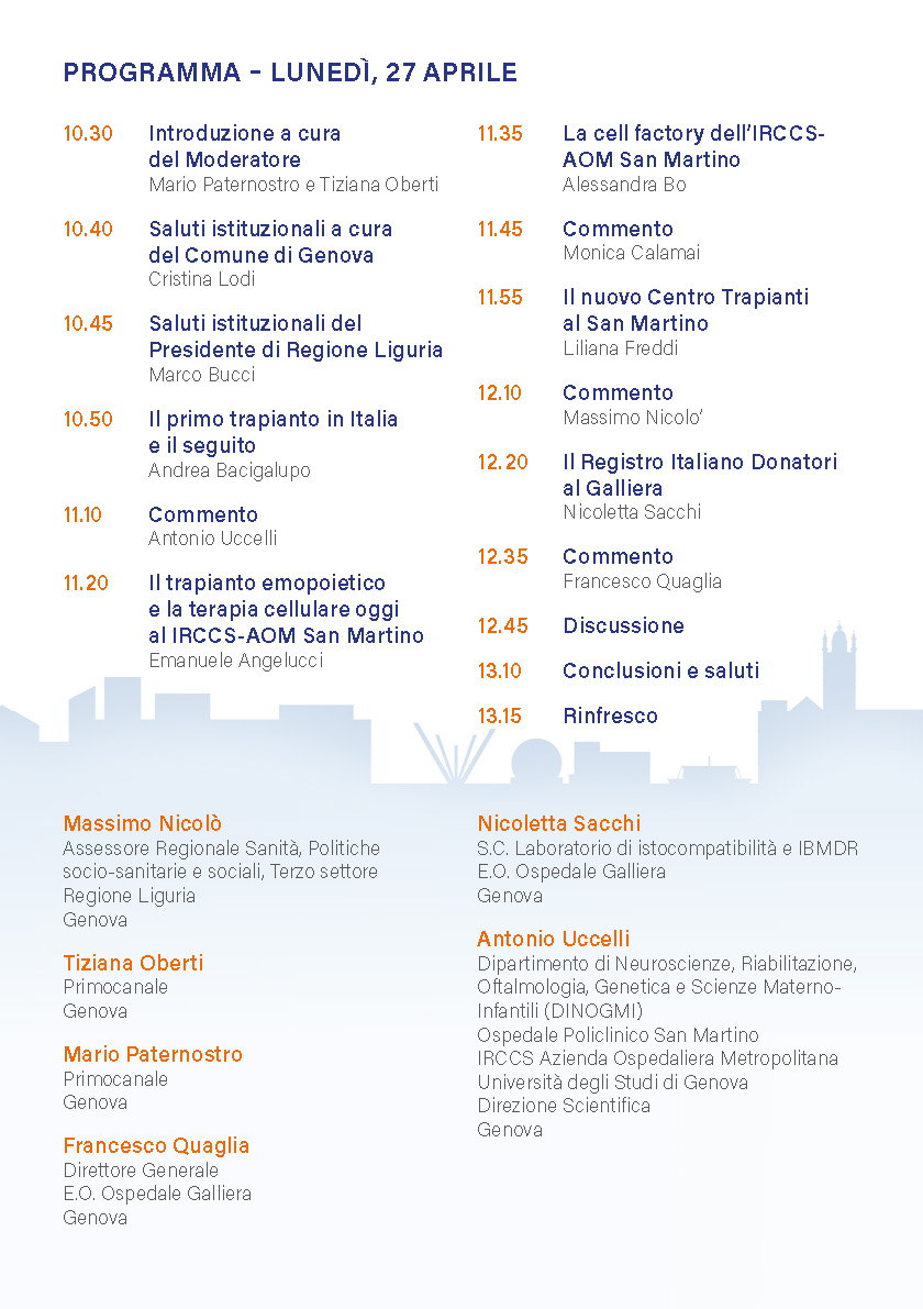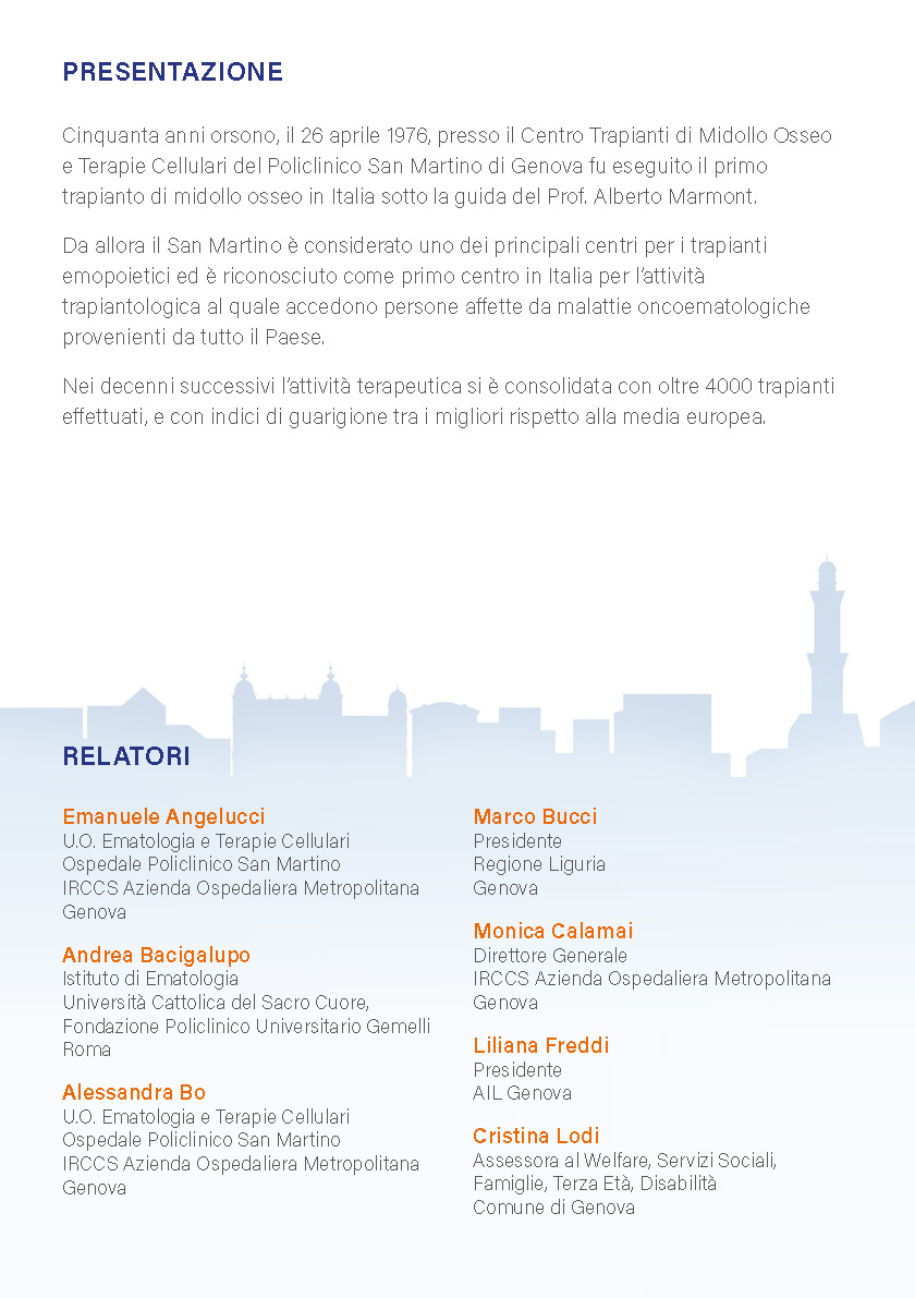 (Eventi Passati)Anniversario dei 50 Anni dal primo trapianto di midollo osseo in Italia